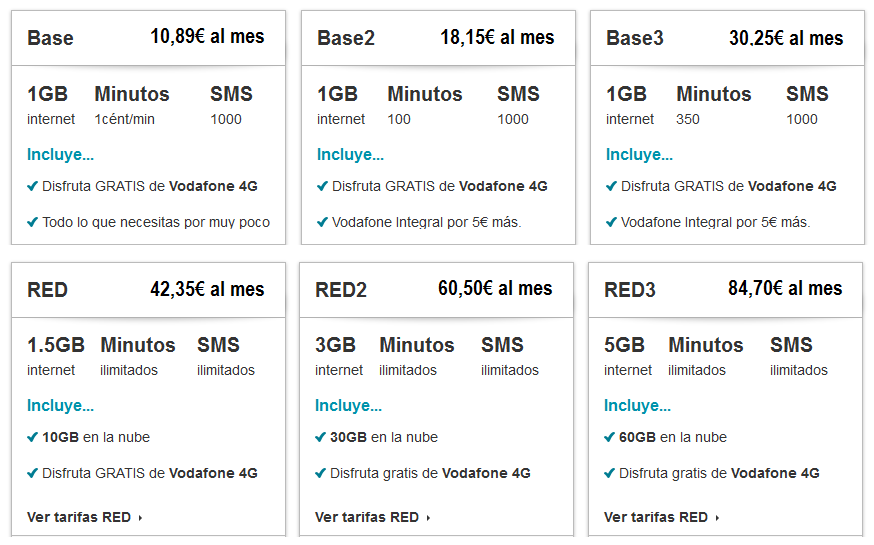 Vodaofne renueva sus tarifas , Base, Smart y Red